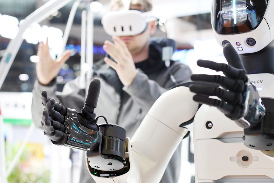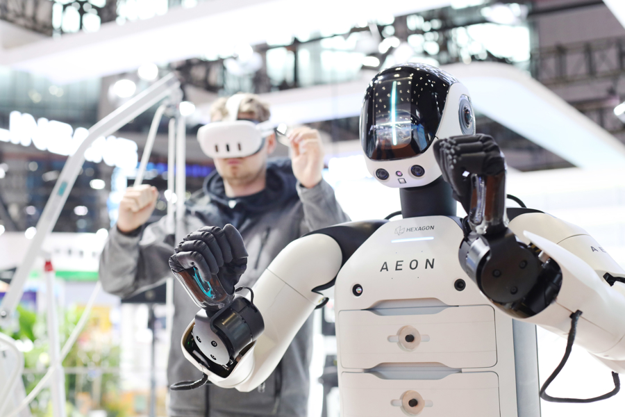 采集数据训练AI大模型,助力AEON这款原形机器人更快进步。